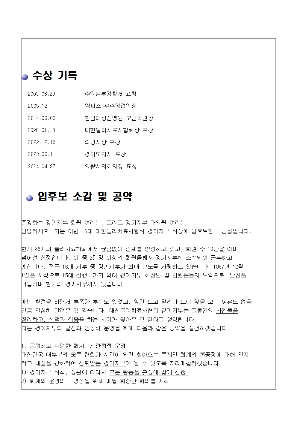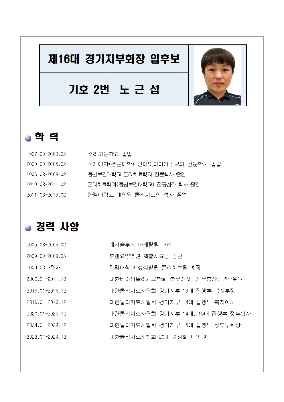 제16대 경기지부 회장 후보자 선거 공고(기호2번 노근섭)
