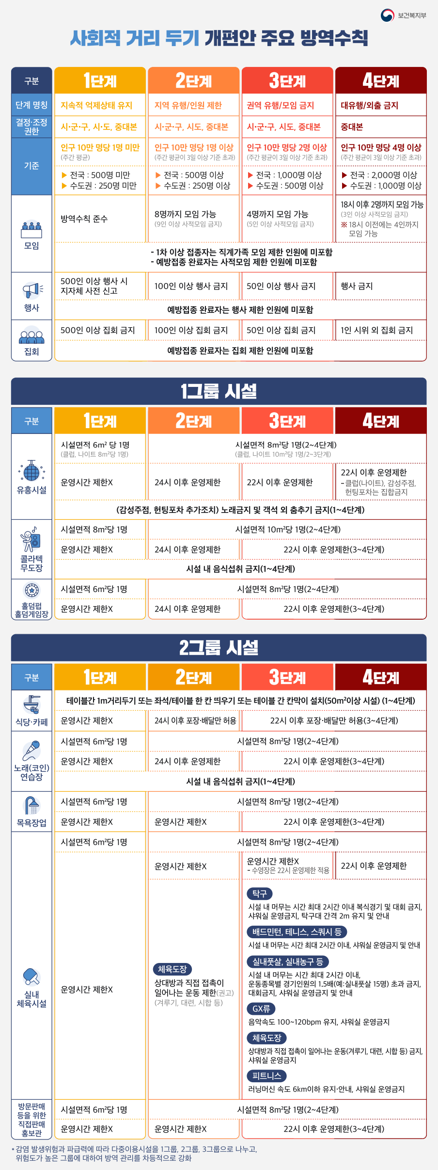 "사회적 거리두기 개편안 및 주요 방역수칙" 관련하여 보건복지부 7월1일자 자료를 첨부하오니 방역과 사회적 거리두기에 경기도회원분들께서 많은 동참 부탁드리겠습니다. 감사합니다.