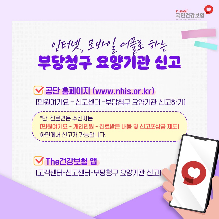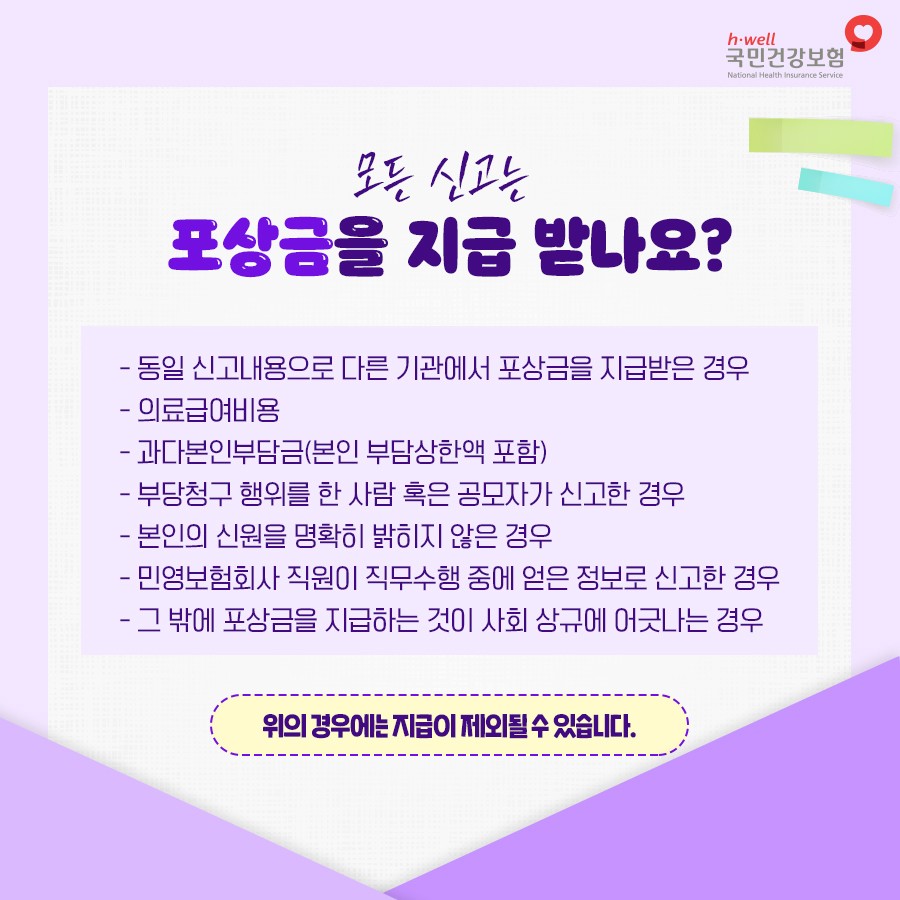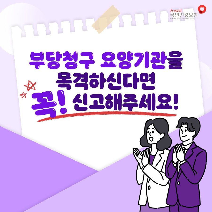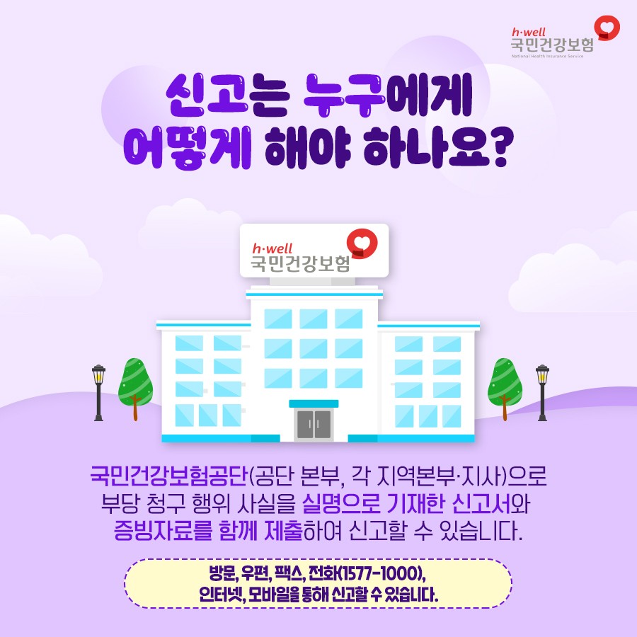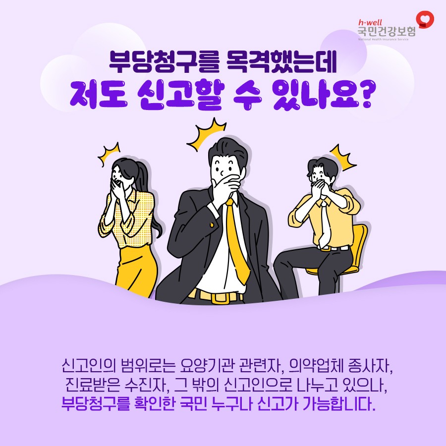 국민건강보험공단에서는 요양기관의 부당청구 행위나, 불법개설기관 등에 대하여 신고하면 공단이 사실관계를 확인하여 부당청구 금액을 환수하고 신고인에게 포상금을 제도를 운영하고 있습니다.